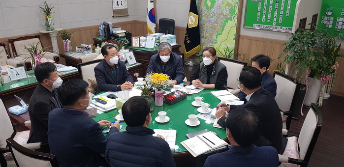 | ▲ 코로나19 확산 방지를 위한 중랑구의회와 집행부 합동대책회의 모습.(사진제공=중랑구의회) |