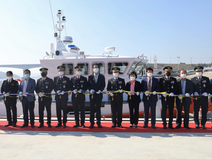 20일 목포해양경찰서(서장 정영진)는 오전 10시 30분경 일곱번째 파출소인 신안파출소의 현판제막식과 신형 연안구조정(s-28정)명명식을 개최했다.