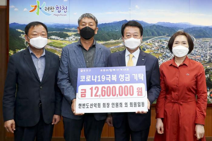 합천군(군수 문준희)은 지난 3일 한반도산악회(회장 안원희)에서 합천군청을 방문해 코로나 19로 어려움을 겪고 있는 군민들을 위해 써 달라며 1,260만원을 기탁했다고 밝혔다.