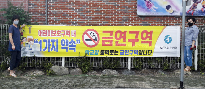 금연구역확대 지정대상은 『합천군 금연 환경 조성 및 간접흡연 피해방지 조례』에 어린이보호구역이 금연구역으로 확대 지정됨에 따라 이를 널리 알리고자 21개소에 홍보 현수막을 게재했다.