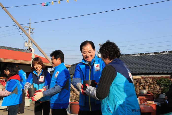전남 완도군은 16일 신우철 군수와 군청 사회복지사 공무원 등이 참여한 가운데 연탄 2500장을 겨울철 난방에 취약한 저소득층 연탄 사용 가구에 전달하는 ‘사랑의 연탄 나눔 봉사활동’을 했다. 사진은 연탄을 나르고 있는 모습. (사진제공=완도군청)