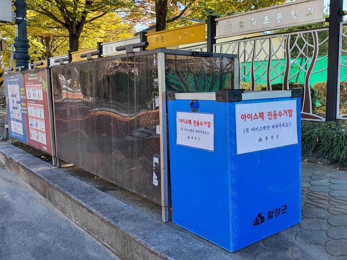 함양군은 지구 환경을 보호하는 차원에서 최근 아이스팩 재활용 사업을 시작하여 현재 11개 읍·면 행정복지센터와 읍 시가지 재활용쓰레기 배출지에 아이스팩 전용수거함을 설치·운영하고 있다.