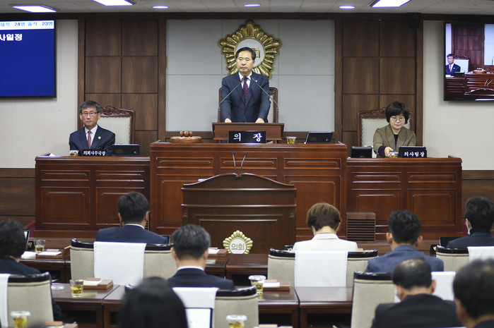 서정진 의장은 개회사를 통해 “해를 거듭할수록 공공시설물이 증가하고, 이를 운영하기 위한 비용이 늘고 있다”면서, “자주재원에 큰 부담이 되는 공공시설물 운영비를 줄이기 위한 다각적인 방법과 대안이 필요한 때”라고 강조했다.