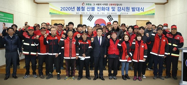 [강진=정찬남 기자] 지난 29일 강진군청 대회의실에서 이승옥 강진군수를 비롯한 산불감시원, 산불진화대원 및 본청과 읍·면 산불 담당 공무원 등 85명이 참석한 가운데 산불예방진화대 발대식 및 직무교육이 실시됐다.