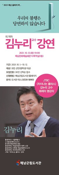 이번 강연은 코로나 확산 방지를 위해 30명까지만 참석 가능하다. 신청은 해남군립도서관 홈페이지에서 10월 1일부터 하면 된다.