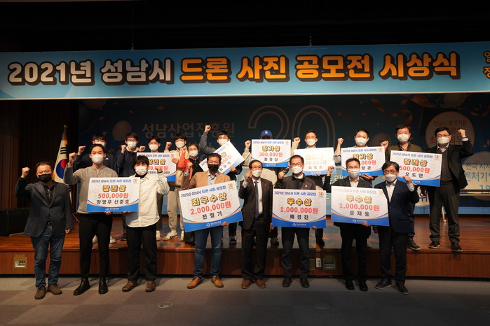 [성남=오왕석 기자] 성남산업진흥원(원장 류해필)이 지난 27일 드론산업 육성의 일환으로 성남시를 널리 알릴 수 있는 양질의 콘텐츠 확보를 위해 진행한 ‘2021년 성남시 드론 사진 공모전’ 시상식을 성남시 분당구 정자동 킨스타워 7층 대강당에서 개최했다.