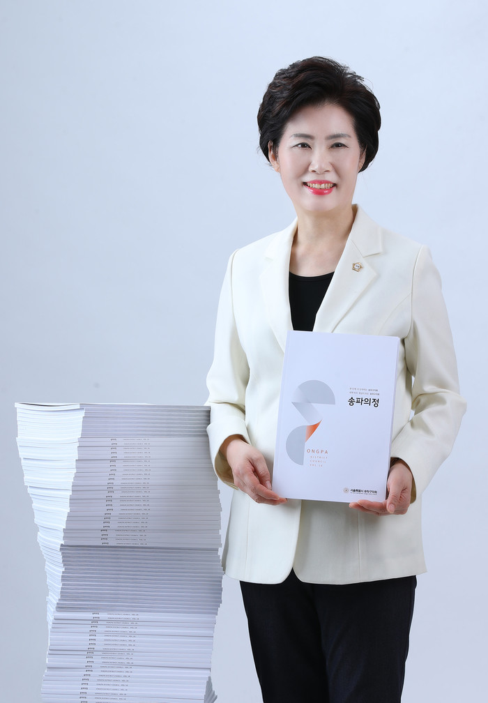 | ▲ 이성자 의장이 송파의정 제16호를 들고 포즈를 취하고 있다. (사진제공=송파구의회) |