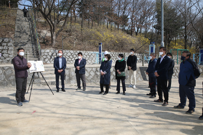 이날 현장점검에 참석한 유양순 의장, 이재광 부의장, 라도균 의원은 숭인1동 유종일 동장, 공원녹지과 직원, 공사 관계자들과 함께 숭인근린공원 시설물 정비사업 현장을 꼼꼼하게 돌아보면서 그동안 주민들이 불편을 느끼고 건의한 사항을 하나하나 살펴봤다.
