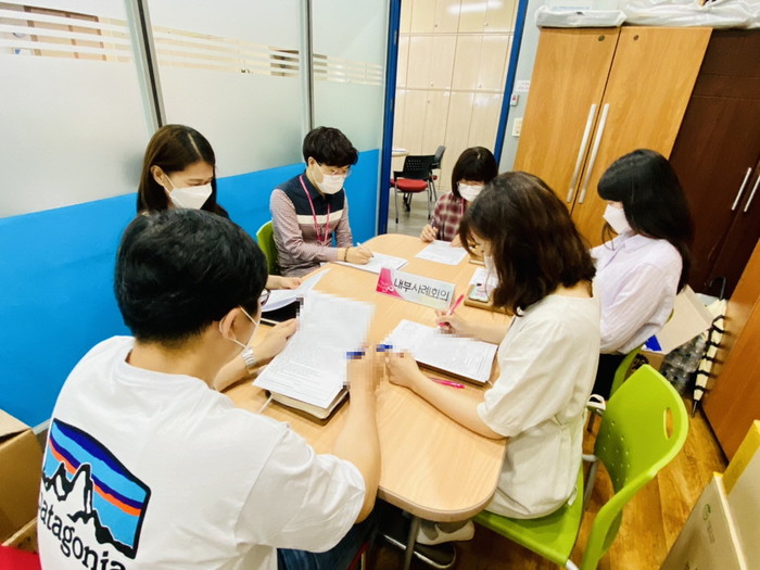 경기 동두천시 무한돌봄센터는 최근 상반기 고난도 통합사례관리 운영에 대한 자체평가를 실시해 지난 1~6월 복지사각지대로 발굴돼 사례관리를 제공 중인 가정의 위기상황 해소 여부와 현재의 상황을 공유하고, 하반기 통합사례관리 추진방향을 논의했다. 사진은 이날 회의가 진행되고 있는 모습. (사진제공=동두천시청)