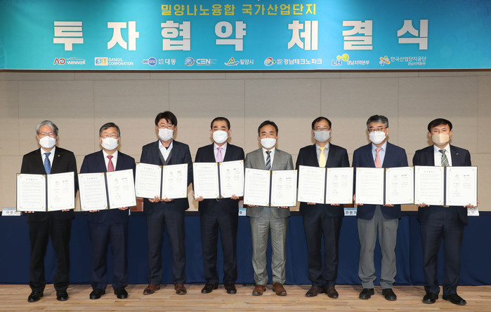협약 체결식에 참여한 ㈜애드위너, (유)대동, 상일CNT(주), ㈜CEN 등 4개사는 밀양시 부북면 일원에 조성 중인 밀양 나노융합 국가산업단지에 2023년까지 부지면적 총 2만 4,874㎡, 투자액 260억원으로 공장건립 및 설비에 투자하고, 밀양시, 경남TP, LH, 산단공은 공장건립에 관한 행·재정적 지원을 제공하기로 협약했다.