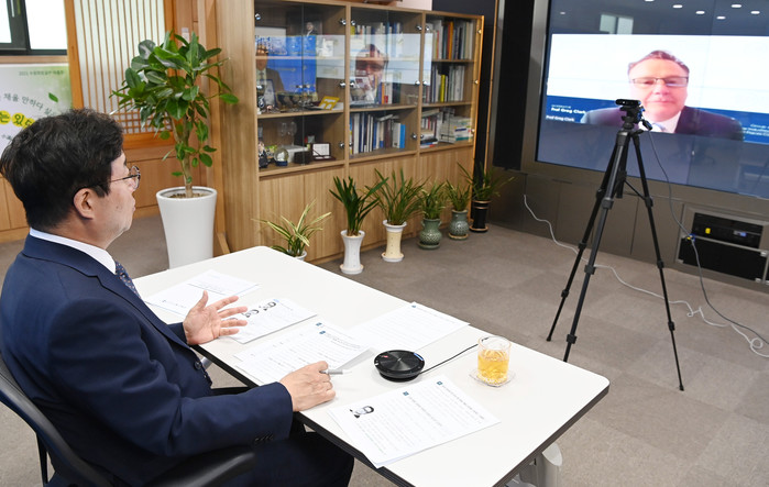 그레그 클락 자문관이 인터뷰를 진행하며, 염 시장에게 ▲5년 후 도시들의 달라질 모습 ▲수원시장이 된 계기 ▲수원시의 코로나19 대응 ▲앞으로 주력해서 추진해야 할 분야 ▲지구의 미래를 위한 수원시의 정책 등을 물었다.