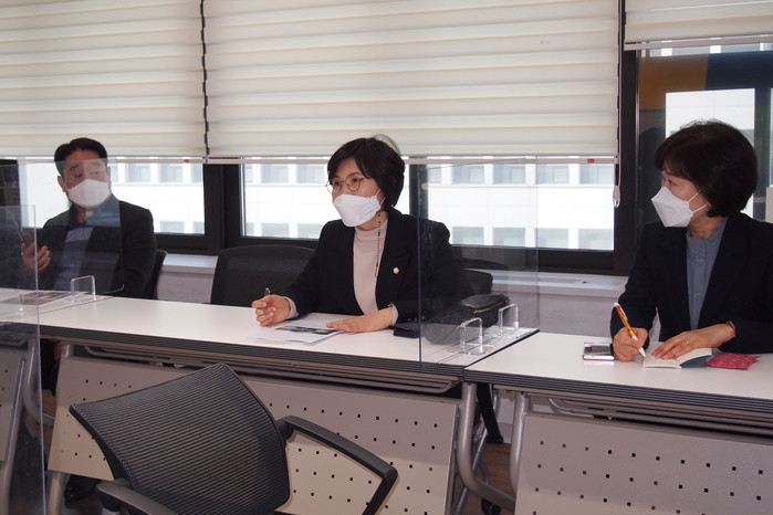 | ▲ 서울시 버스정책과를 방문한 노진경 의원(가운데)이 관계자들과 버스 운행 개선에 대해 논의하고 있다. (사진제공=종로구의회) |
