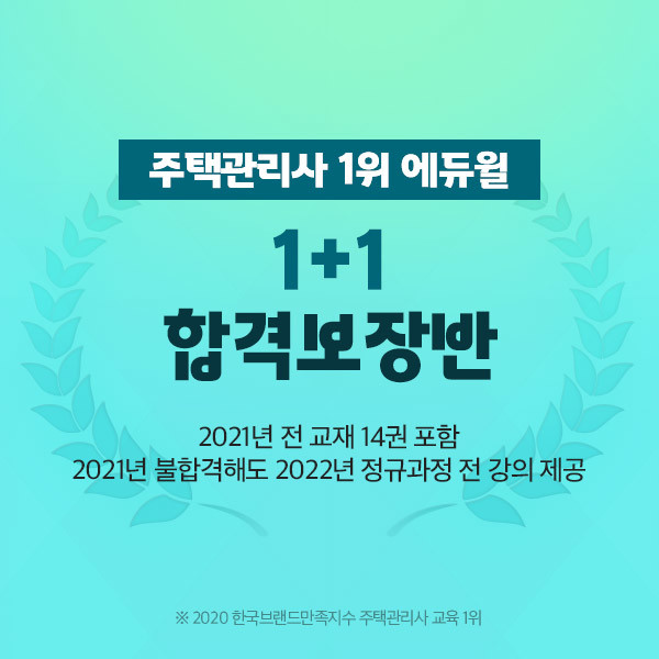 [시민일보 = 여영준 기자] 종합교육기업 에듀윌(대표 박명규)은 주택관리사 수험생을 위해 ‘1+1 합격보장반’을 선보이고 수강생을 모집한다.