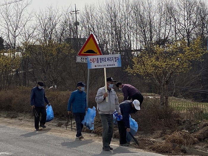 충남 홍성군은 최근 겨우내 묵은 쓰레기를 수거하며 쾌적한 환경조성에 나섰다. 장곡면에서는 천태리 저수지 주변의 각종 생활쓰레기를 수거했고, 홍북읍은 대동리 일대의 생활쓰레기 및 무단 방치된 쓰레기를 집중 수거했다. 사진은 홍북읍 노인 봉사자들이 대동리 일대에서 쓰레기를 줍고 있는 모습. (사진제공=홍성군청)