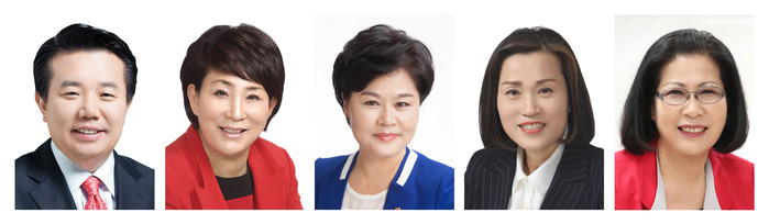 | ▲ (왼쪽부터)박동웅 의장, 곽윤희 부의장, 조미향 운영위원장, 박종여 행정기획위원장, 최숙자 복지건설위원장. (사진제공=구로구의회) |