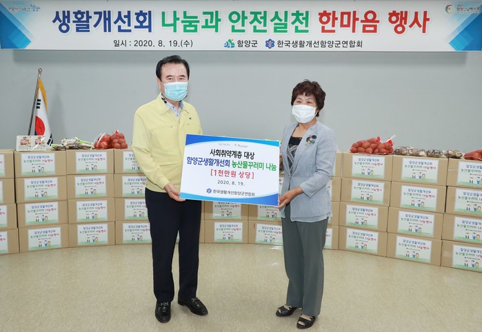 함양군생활개선회는 쌀, 찹쌀, 양파, 감자 등 7가지 농산물과 가공품이 담긴 농산물꾸러미 330상자(1천만원 상당)를 나누어 이웃 사랑을 실천함으로써 농업인단체의 모범이 되었다.