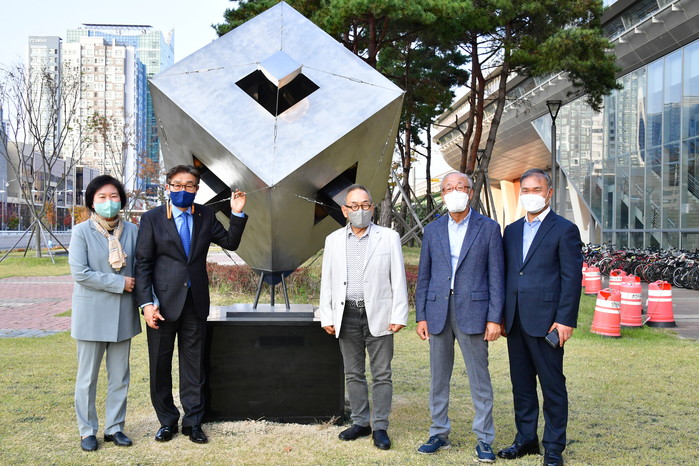 이번 기증식은 권달술 작가의 작품 ‘공간놀이(Space Story)’ 2점을 기증하면서 마련됐다. 지난 2019년 양산시청 본관 현관 앞에 전시된 ‘소통-00’ 작품에 이어 두 번째 작품 기증식이다.