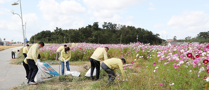 | ▲ 지난 5일 서산시의회 의원들이 추석 명절연휴 기간 동안 많은 관광객이 다녀간 간월도 관광지 일대 환경정화 활동에 나섰다. 사진은 쓰레기를 수거하는 의원들의 모습. (사진제공=서산시의회) |