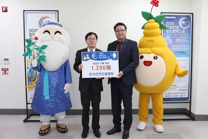 이날 한국안전진흥협회는 함양산삼항노화엑스포 예매 입장권 1,200매를 구매 약정하였다.