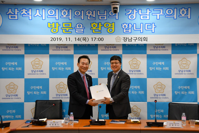 [시민일보 = 이대우 기자] 서울 강남구의회(의장 이관수)가 최근 강원 삼척시의회 방문단을 접견하고 간담회를 열었다.