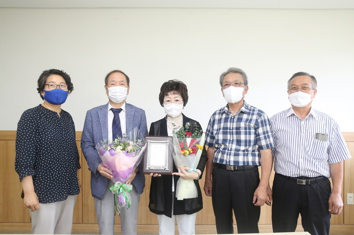 | ▲ 감사패를 받은 왕정순 의원(가운데)이 남현동 주민들과 기념촬영을 하고 있다. (사진제공=관악구의회) |