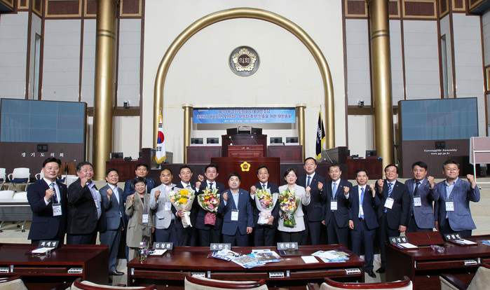 [수원=채종수 기자] 경기도의회 더불어민주당은 16일 도의회 본회의장에서 임시 총회를 열고 제10대 후반기를 이끌어 갈 대표의원과 의장·부의장 후보를 선출했다.