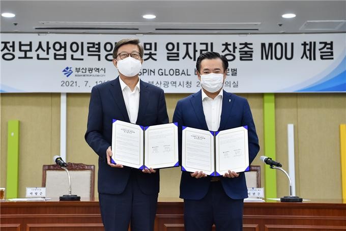부산시(시장 박형준)는 7월 12일 오전 11시 시청 26층 회의실에서 클라우드 기업인 베스핀글로벌(대표 이한주)와 함께 인력양성 및 채용을 위한 업무협약을 체결했다고 밝혔다.
