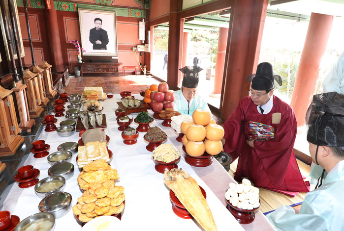 최근 서울 용산구 효창공원 의열사 본전에서 '2019 효창원 7위선열 숭모제전'이 열렸다. 이날 행사는 성장현 구청장, 이종래 효창원7위선열기념사업회장, 지역주민 등 200명이 참석한 가운데 진행됐다. 사진은 성 구청장이 제례에 참여하는 모습. (사진제공=용산구청)