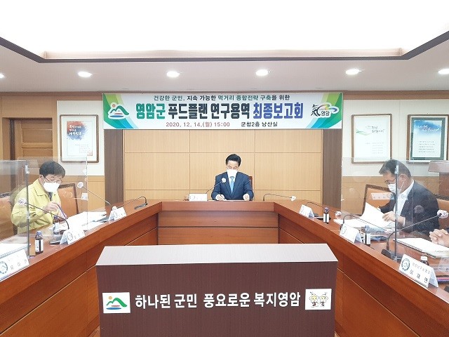 [영암=정찬남 기자] 전남 영암군은 지난 14일 군청 낭산실에서 전동평 군수 주재로, 농협중앙회영암군지부장, 농협장, 지역 먹거리 관련 단체 대표, 실과소장 등 30여 명이 참석한 가운데‘영암군 푸드 플랜 연구용역 최종보고회’를 개최했다.