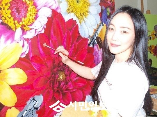 낸시랭은 꽃으로 가득한 작품을 완성하며 화사한 미모를 자랑했다.