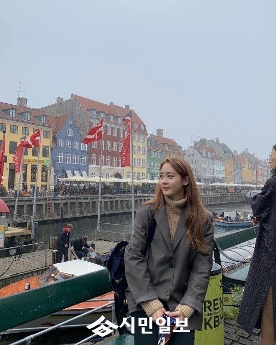 공개된 사진 속 성유리는 멋스런 강변길을 걸으며 한 곳을 바라보고 있다.