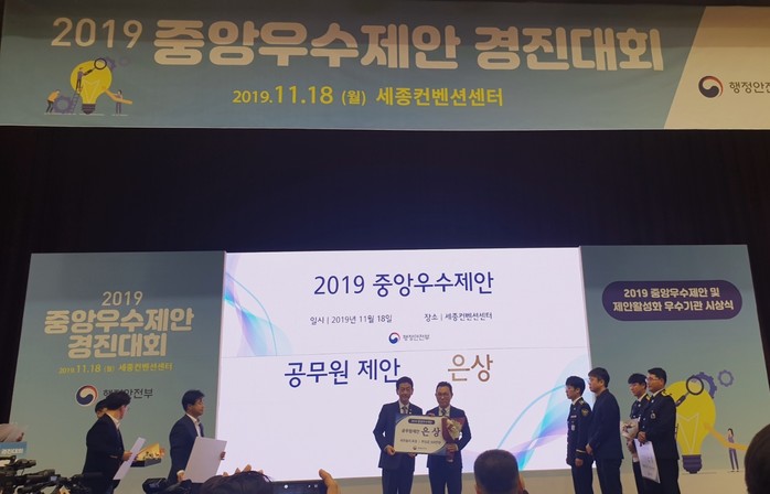 한편 지난 18일 정부세종컨벤션센터에서 행정안전부 주최로 개최한「2019 중앙우수제안 경진대회」에서 부산본부세관 정진원 행정관과 관세청 이원희 행정관은 본 제안으로 은상을 수상했다.