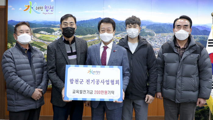 경남 합천군 전기공사업협회(회장 지재원)는 지난 9일 오후 15시 30분에 (사)합천교육발전위원회(이사장 문준희)를 방문하여 합천군 향토인재 육성에 써달라며 교육발전기금 2맥만원을 전달했다.