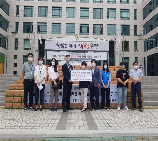 중랑구는 지난 18일 서울우유협동조합, SIG콤비블록코리아로부터 코로나19 극복을 위한 서울우유 멸균우유 1리터 6000팩(1000만원 상당)을 기탁받았다. 이번 기부는 고객이 멸균우유 2박스를 구매하면, 멸균우유가 1박스씩 기부되는 이벤트 형식으로 진행됐다.