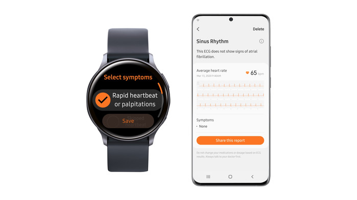 심전도 측정은 '삼성 헬스 모니터' 앱을 통해 올해 3분기내 출시할 계획이며, 관련 센서가 내장된 갤럭시 워치 액티브2 및 향후 심전도 측정 기능이 지원되는 스마트 워치에서 사용할 수 있도록 할 예정이다.