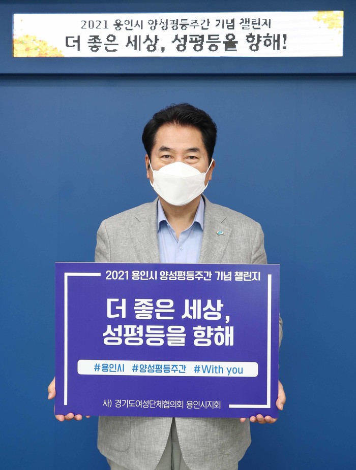백 시장은 ‘더 좋은 세상, 성평등을 향해’라는 슬로건으로 챌린지 첫 주자로 참여했으며, 다음 참여자로 이윤송 경기여협 용인시지회장을 지목했다.