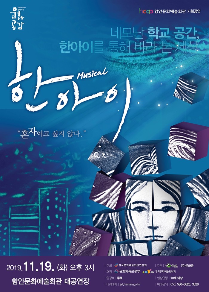 오는 19일 오후 3시 함안문화예술회관 대공연장에서 뮤지컬과 샌드아트를 조화해 새로운 형식으로 풀어낸 학교폭력예방극 ‘한아이’가 공연된다.