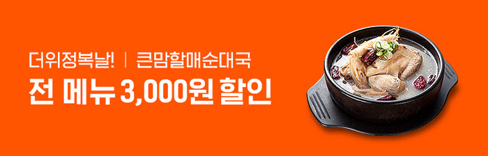 이번 혜택으로 고객들은 복날 전통 보양식인 삼계탕에서부터 여름철 별미인 콩국수까지 큰맘할매순대국의 각종 메뉴를 할인된 가격에 즐길 수 있다.