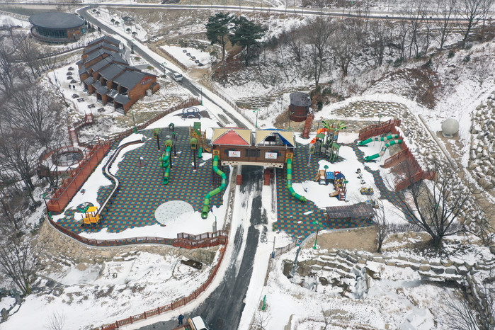 숲속놀이터 세부시설은 구체적으로 메인놀이대 및 각종 슬라이드가 부착된 15개의 놀이대를 비롯해 파고라, 데크, 벤치, 휴게캐노피, 바닥분수, 음수대 등이 포함된 편의시설로 이루어져 있다.