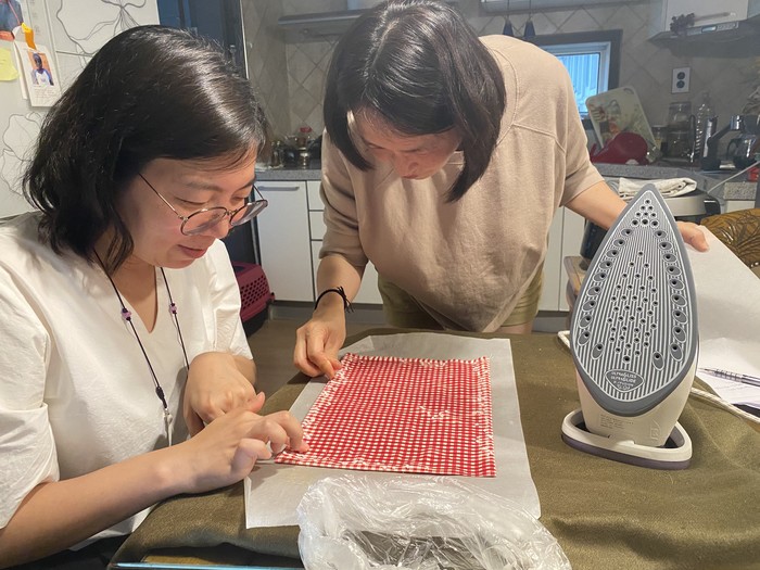 | ▲ 냉찜질팩 파우치를 제작하고있는 자원봉사자들. (사진제공=서초구청) |