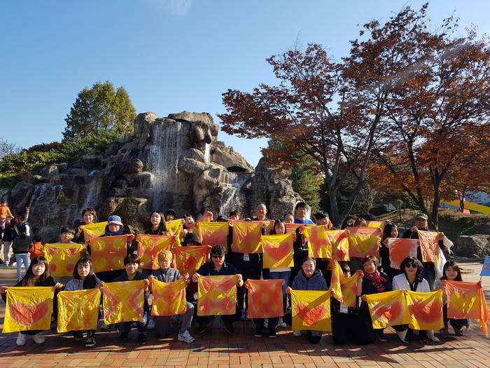 경기 안산시 건강가정지원센터는 최근 ‘2019 경기도 행복한 가정 프로그램’의 일환으로 청소년 자녀가 있는 가구를 대상으로 ‘사랑애(愛) 가족나들이’ 프로그램을 운영했다. 사진은 가족들이 전통문화체험을 한 후 기념촬영을 하는 모습. (사진제공=안산시청)
