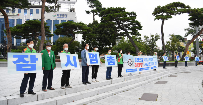 거창군은 지난 27일 코로나19 확산 연결고리를 차단하기 위해 김홍조 거창군 바르게살기운동협의회장과 회원 10명이 참석한 가운데 군청 앞 로터리 주변에서 ‘잠시 멈춤’ 캠페인을 전개했다고 밝혔다.