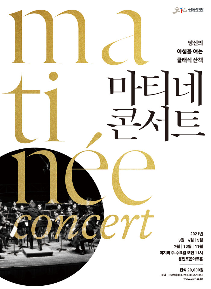 [용인=오왕석 기자] (재)용인문화재단(이사장 백군기)은 3월부터 11월까지 용인포은아트홀에서 <마티네콘서트>를 개최한다. 2012년 용인포은아트홀 출범과 함께 시작되어 올해로 10년차를 맞이한 <마티네콘서트>는 용인시민들에게 가장 사랑받는 상설기획프로그램으로 자리매김 해왔다. 올해는 3월, 4월, 5월 시즌Ⅰ, 7월, 10월, 11월 시즌Ⅱ로 총 6회의 공연이 준비되어 있으며, 대편성 교향곡부터 탱고앙상블, 오페라 갈라, 피아노 듀오까지 다양한 장르와 구성으로 기획하여 시민들에게 보다 폭 넓은 향유 기회를 제공한다.
