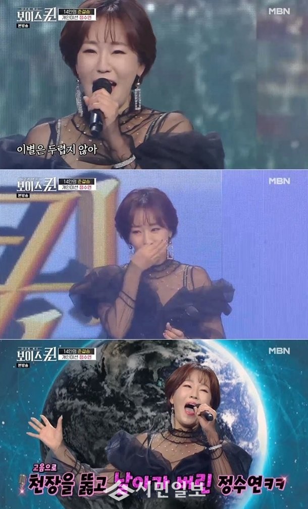 퀸메이커 인순이는 정수연에게 "무대를 찢었다고요? 아니다. 천장을 뚫었다"며 극찬했다.