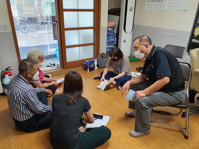 경기 양평군 양평읍은 복지사각지대 발굴을 위해 지난달부터 마을회관과 경로당 등 119곳을 방문해 복지상담 및 홍보를 추진하고 있다. 최근 사회적 거리두기가 격상됨에 따라 비대면 유선상담을 병행하고 오는 8월 말까지 하절기 복지사각지대 집중 발굴조사도 함께 진행한다. 사진은 최근 읍 관계자들이 경로당을 방문해 노인들과 대화를 나누고 있는 모습. (사진제공=양평군청)