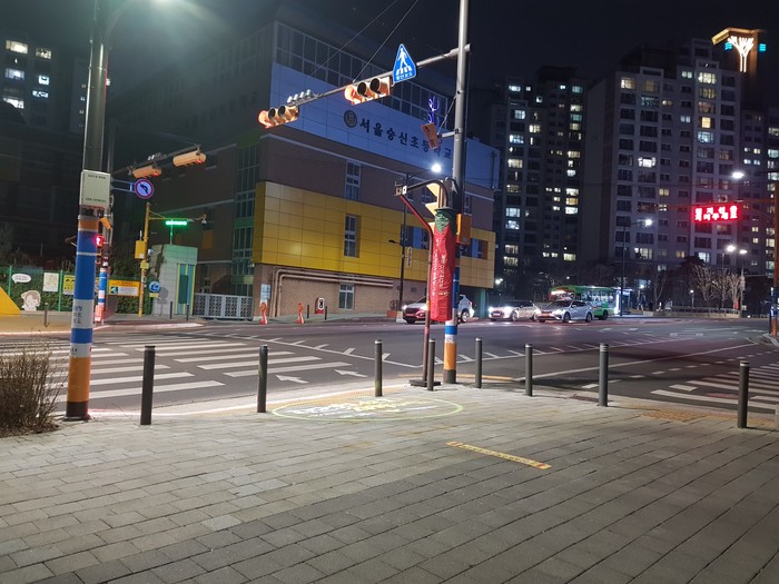 | ▲ 숭신초등학교 앞에 설치된 스마트 횡단보도. (사진제공=성동구청) |
