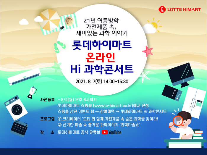 [시민일보 = 홍덕표 기자] 롯데하이마트가 여름 방학을 맞아 전국 초·중학생을 대상으로 오는 8월7일 오후 2시부터 롯데하이마트 공식 유튜브 채널에서 'Hi(하이) 과학콘서트'를 연다.