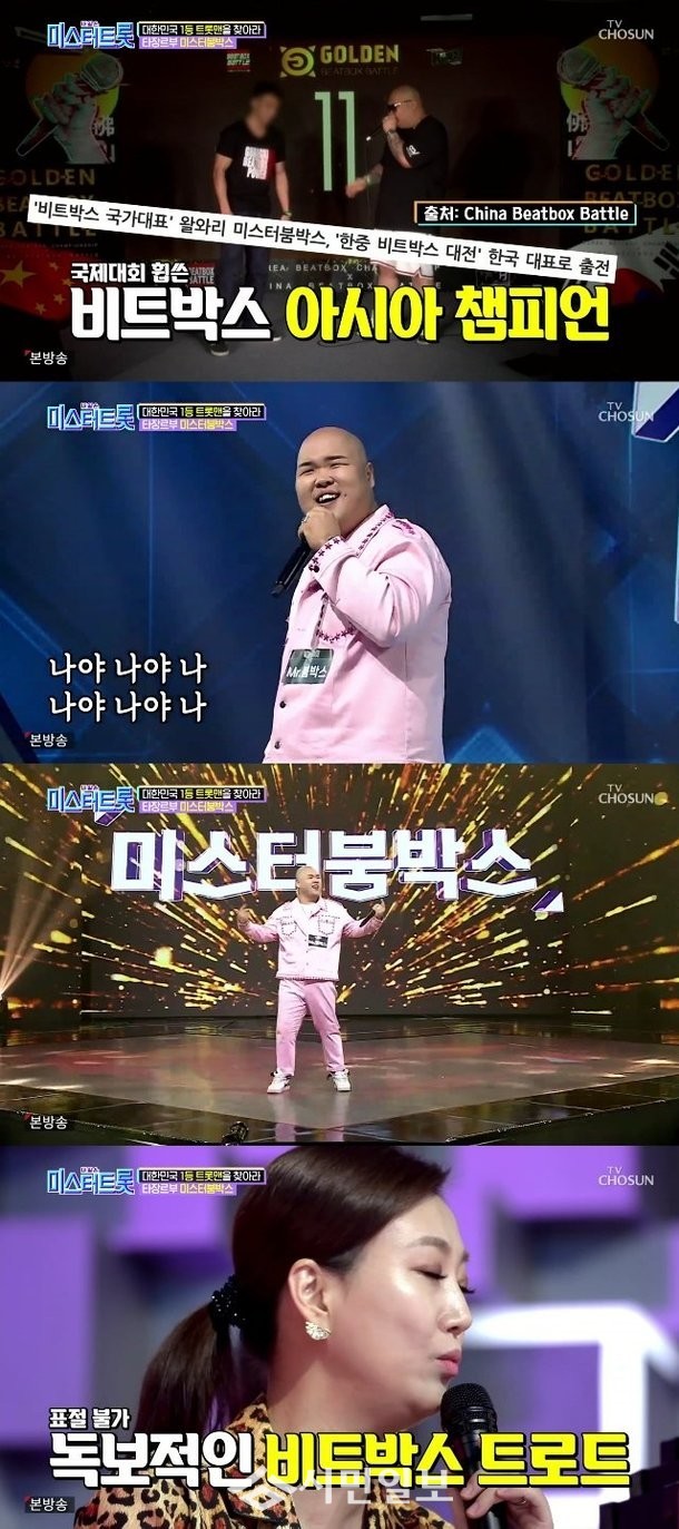 미스터붐박스는 남진의 ‘나야 나’를 선곡했다. 미스터붐박스는 반주부터 비트박스를 선보였다. 화려한 비트박스에 심사위원들은 매료됐다. 노래가 시작되어도, 미스터붐박스의 비트박스는 멈추지 않았다. 노래 중 중간, 적절한 비트박스로 ‘역시 실력자’라는 말이 절로 나오게 했다.