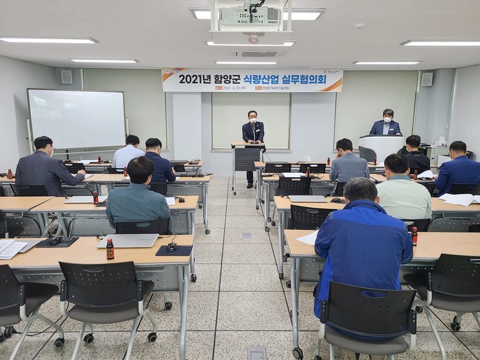 함양군(군수 서춘수)은 지난 4월 21일 농업기술센터 회의실에서 농림축산식품부에서 추진하는 식량산업종합계획 추진 및 평가 관련 실무협의회를 개최하였다.