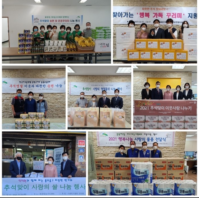 불광2동의 전직원도 추석맞이 기부 나눔 행사에 적극적으로 동참해 식료품, 화장품, 생활용품 등을 우리 주변 이웃들에게 안부 인사와 함께 전달했다.